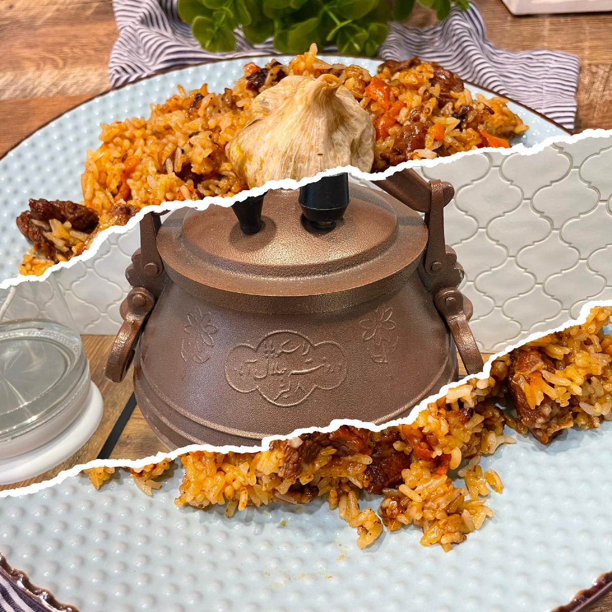 ИНГРЕДИЕНТЫ: • Говядина - 400 г • Рис - 250 г • Морковь - 2 средние шт. • Лук - 1 средняя шт. • Чеснок - 1 головка и 3 зубчика (3 зубчика для зирвака, целая головка в плов) • Томатная паста - 1 ст. л. • Соль - 1 ч. л. (по вкусу) • Перец - по вкусу • Зира - 0,5 ч. л. • Растительное масло - 3 ст. л. • Вода - 200 мл (может чуть больше) Приготовление: 1. Говядину необходимо помыть, обсушить и нарезать на небольшие кусочки. Рис промойте несколько раз до прозрачной воды. Овощи очистите и хорошо помойте. Лук нарежьте кубиками, морковь — брусочками, чеснок разрежьте на 4 части. 2. Установите на плиту афганский казан, влейте масло и разогрейте его. На сильном огне обжарьте мясо до румяной корочки, постоянно помешивая. Обжаренное мясо выньте шумовкой из казана в тарелку. 3. В масло после мяса отправьте лук, морковь и чеснок. Если масла будет недостаточно, можно добавить 1-2 ст. л. Обжаривайте овощи до мягкости. 4. К мягким овощам верните обжаренное мясо. 5. Добавьте соль по вкусу и зиру. Пе