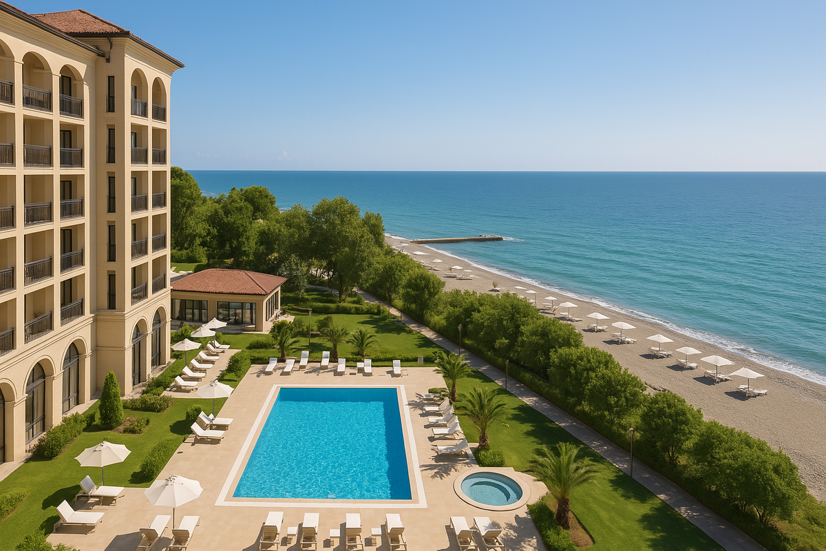 Отели, такие как Grand Hotel Anapa и Swissotel Resort Sochi Kamelia, расположены непосредственно на первой береговой линии, обеспечивая прямой доступ к морю.
