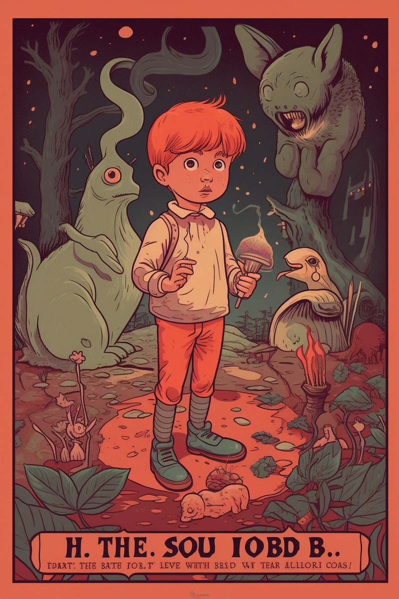 Создано на основе запроса: The art should be of children trying to conjure spirits from the underworld. Retro 1970s-1980s children’s book illustration style, thick ink outlines, muted vintage color palette, flat shading, kitschy humor, faux educational tone, centered composition, inspired by Steven Rhodes, vintage textbook aesthetic, choose-your-own-adventure parody, intentionally awkward expressions, worn book cover texture --- Автоперевод: Искусство должно быть детей, пытающиеся вызвать духи из подземного мира. Как тебе генерация? 🤔 https://dzen.ru/id/65c0c65c86e4f837c27b24d7 #ИИ #AI #нейросеть #midjourney #art