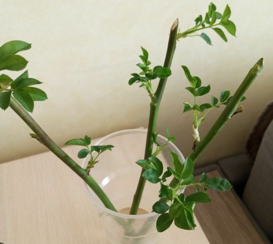 Нарезанные черенки поставить в раствор на сутки, затем ополоснуть их и дальше отправить в обычную воду или сразу посадить в горшок с землей. Корни благодаря такому способу подготовки растений отрастут быстро. Когда погода стабилизируется, можно будет пересадить черенки с корешками в открытый грунт.