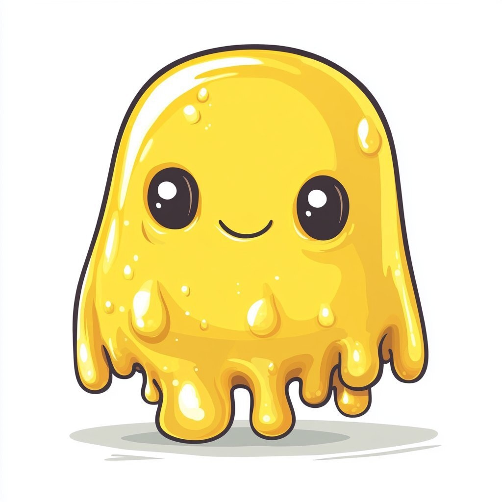 Создано на основе запроса: cute slime in cartoon artwork,yellow with random shape and slimedrops, white background