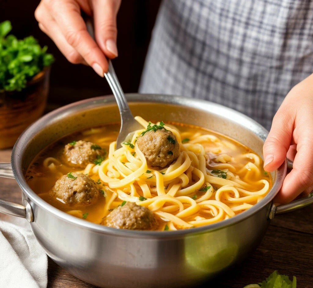 В кипящий бульон аккуратно опустите фрикадельки. Варите 7–10 минут.