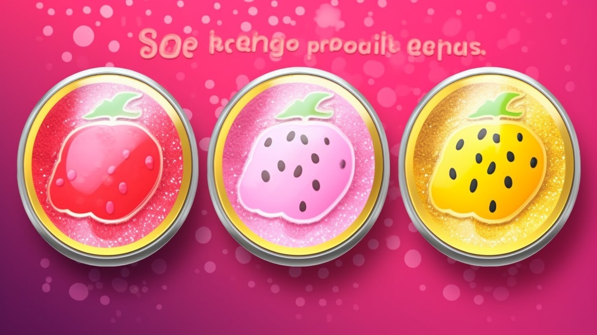 Создано на основе запроса: set of 4 futuristic NFT-style badges inspired by Poppi strawberry lemon soda, each badge representing a higher level of progression, from beginner to elite, circular design with vibrant pink and yellow color palette, glossy metallic texture, subtle water droplets, playful icons like soda bubbles and fruit motifs, Poppi logo clearly featured on each, holographic glowing edges, digital collectible design, gamified style, white background