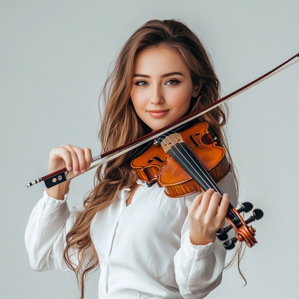 Создано на основе запроса: on a light grey background a beautiful musician plays the violin