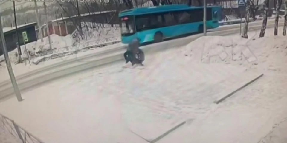 В Новокузнецке у автобуса колесо отлетело прямо во время движения и сбило человека на тротуаре. Видео, на котором запечатлено странное ДТП, появилось в социальных сетях.