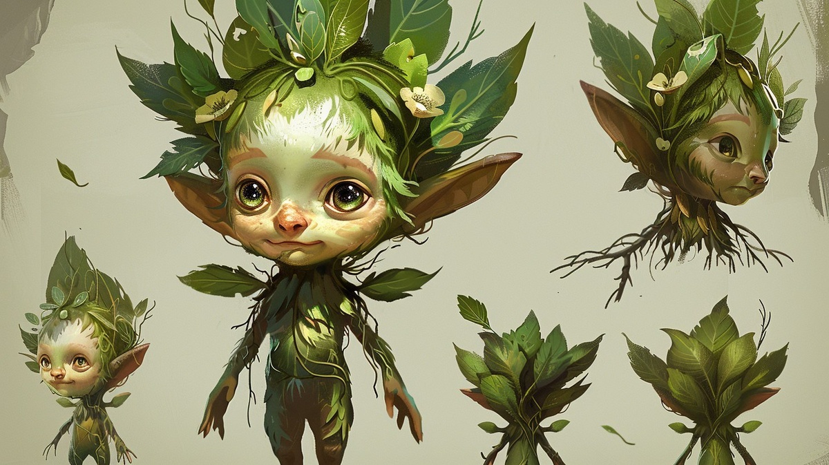 Создано на основе запроса: , a character sheet of a magical fairy sprout, has a face, very cute and endearing