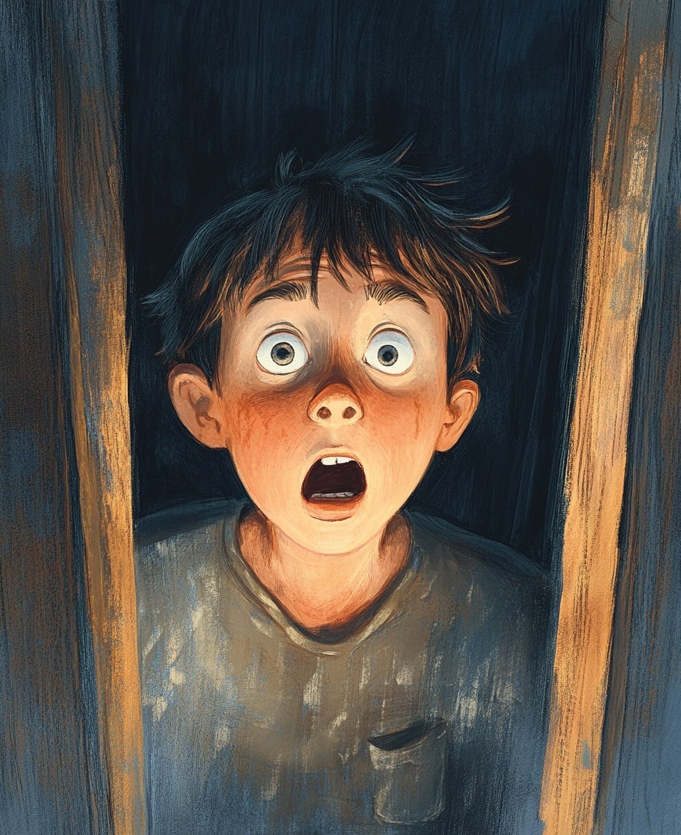 Создано на основе запроса: book illustration, a young boy who is suffering from Night terrors, he is surprised at something mysterious
