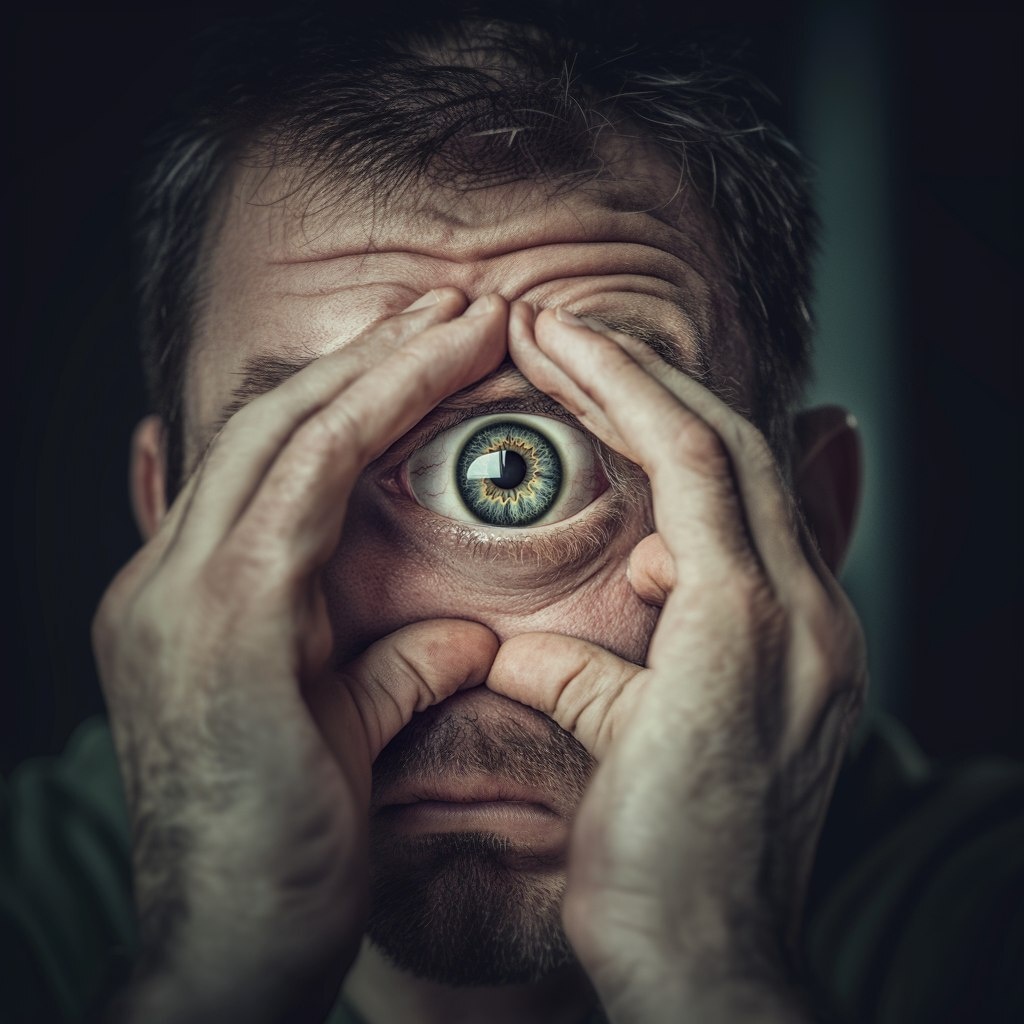 Создано на основе запроса: A man pushing his eyes together and making them one big eye