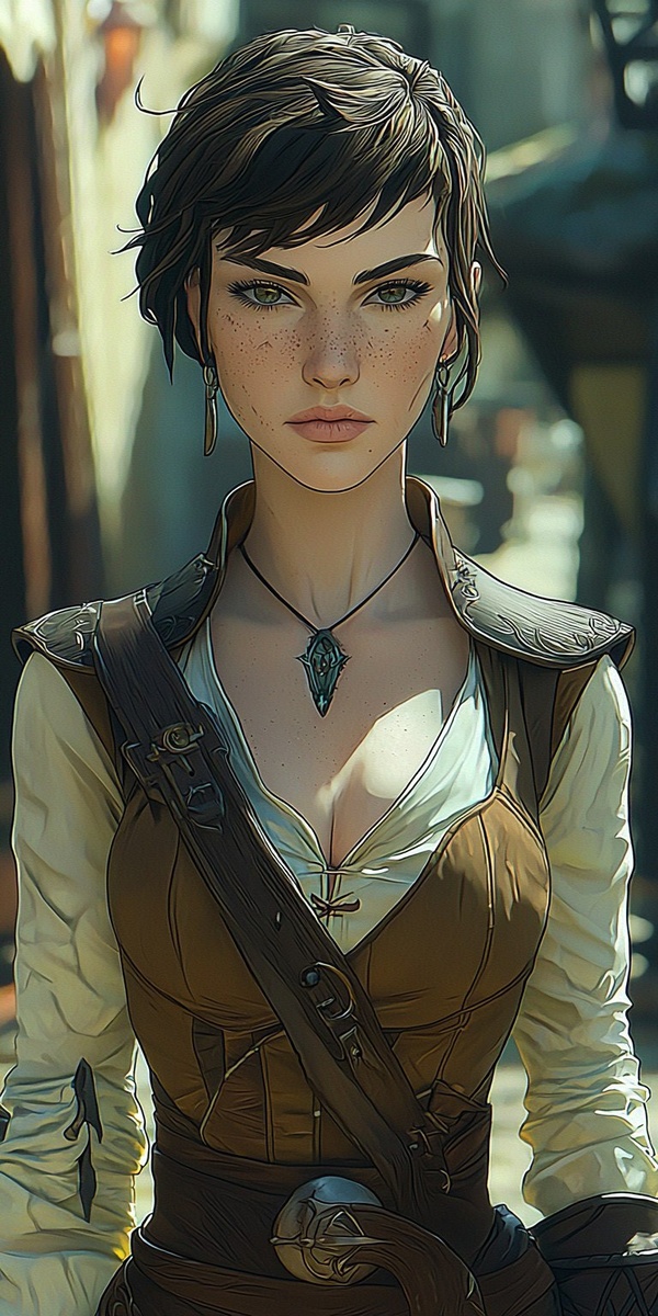 Создано на основе запроса: High fantasy character, female variant human artificier, full body portrait, dynamic pose, realistic face, realistic anatomy, intricate, insane details, D&D character, town background, great illustration, ultra realistic, well detailed, intricate, hyper detailed background, hyper intricate background, cinematic shadows, cinematic lights, cinematic reflections, non-euclidean geometry, high contrast, depth of field, intricate details, hyper realistic