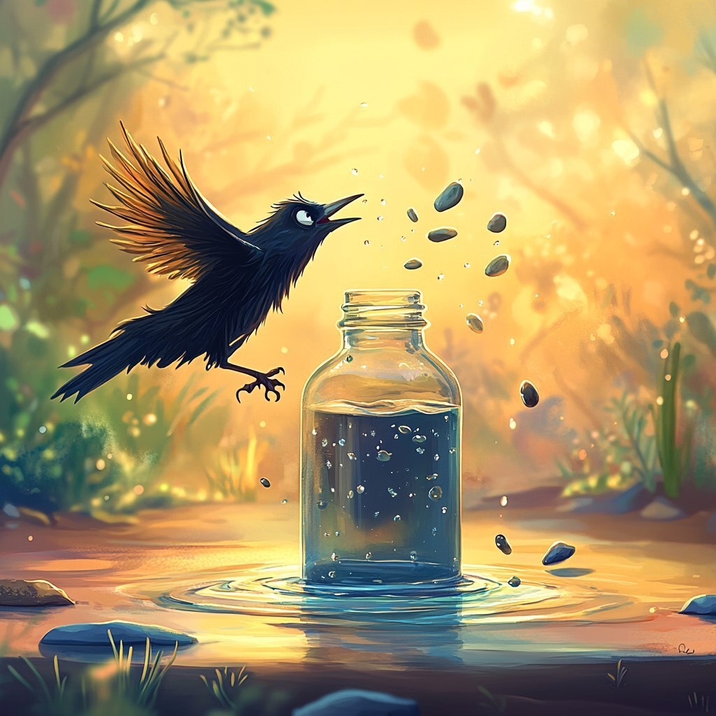 Создано на основе запроса: clear glass bottle slowly filling up with water as smooth pebbles drop inside, creating tiny splashes and ripples, a cheerful cartoon crow flapping its wings in excitement, sunlight shining through the glass, soft Disney-style animation, warm and vibrant colors --- Автоперевод: Чистая стеклянная бутылка медленно наполняется водой, когда внушает гладкую гальку, создавая крошечные брызги и рябь, веселую мультипликационную ворону, развеваясь на крыльях, солнечным светом, сияющим сквозь стекло, мягкая анимация в стиле Диснея, теплые и яркие цвета Круто получилось? 🤔 https://dzen.ru/id/65c0c65c86e4f837c27b24d7 #ИИ #AI #нейросеть #midjourney #art