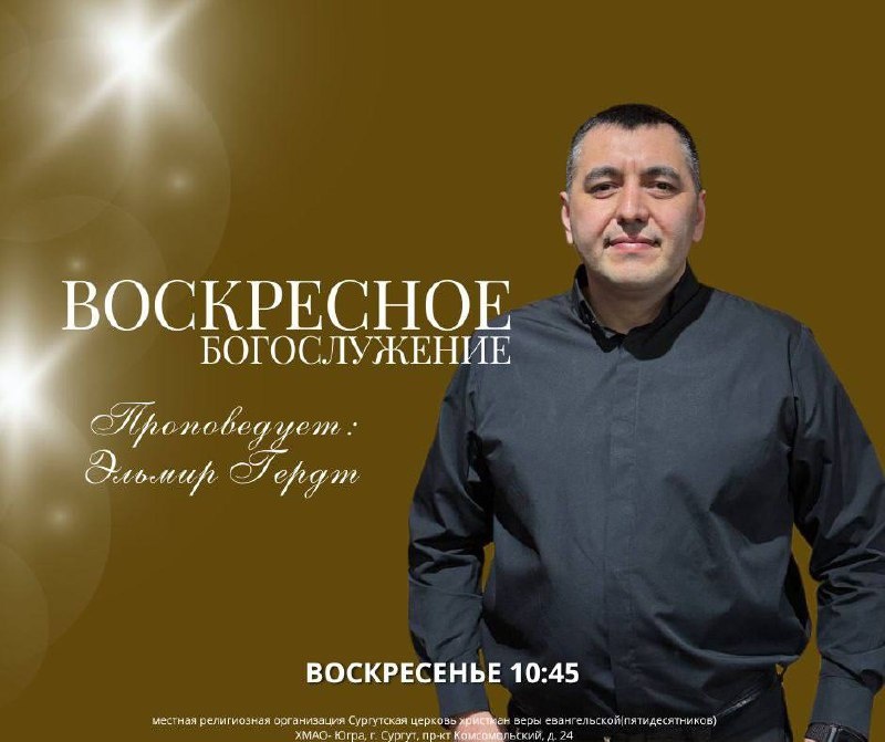 Добро пожаловать на торжественное Богослужение. 📆 завтра: 30.03.2025 🕖 10:45 📍 Сургут, пр-т Комсомольский 24 📎 проповедует пастор Эльмир Гердт Тема: Библейский пост. Как начать поститься? Будем готовить наши сердца и уши для слышания🕊️ 🔗 присоединяйтесь к нам онлайн RUTUBE rutube.ru/channel/41... YouTube youtube.com/ @surgut_cerkov Дзен dzen.ru/wolsurgut #сургут #сцхве #христиане #воскресень