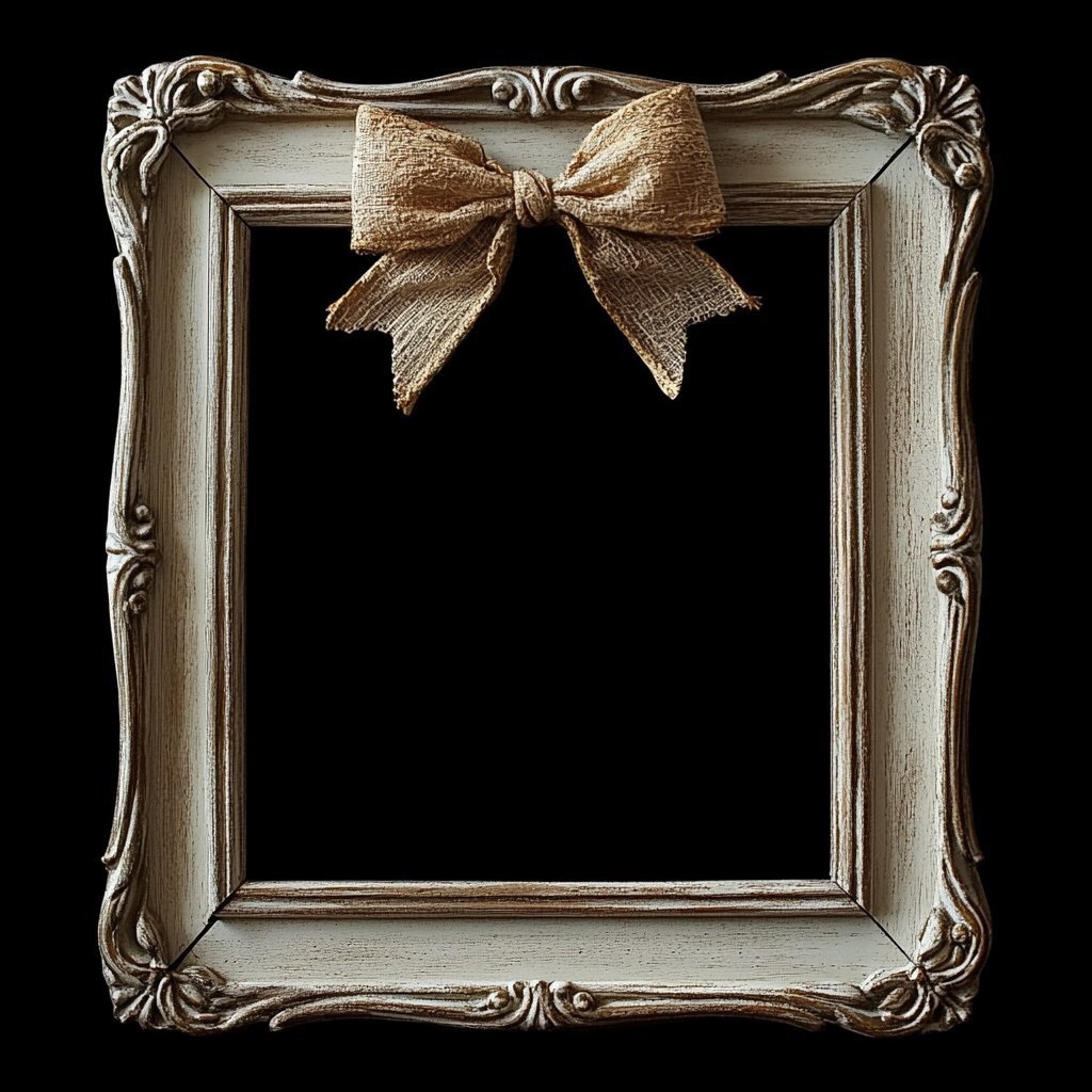 Создано на основе запроса: shabby chic picture frame with wooden bow on top of frame, black background