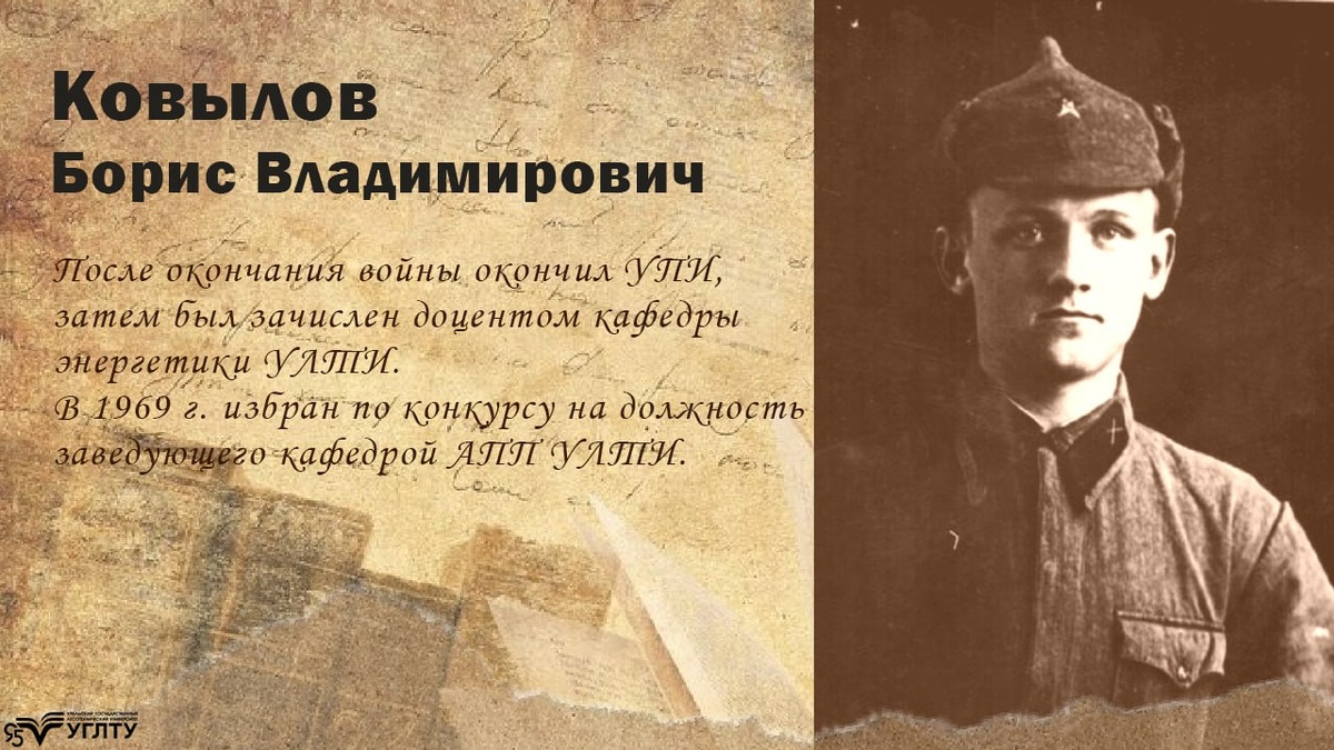 #герои_ВОВ_УГЛТУ 🔍 О героях, о той памяти, которая живет в сердцах наших современников рассказываем в наших социальных сетях usfeu.ru/universite... Ковылов Борис Владимирович Родился 8-го марта 1921 г. в Свердловске. Окончил в 1939 г. среднюю школу №2 им. И.С. Тургенева. В сентябре 1939 г. стал студентом Московского Авиационного института им. С. Орджоникидзе. 25 октября 1939 г. призван в ряды РККА и отправлен в г. Кременчуг (Украина) для прохождения службы в 406 ЛАП, 116СД. #НаучныйПолк #Победа80