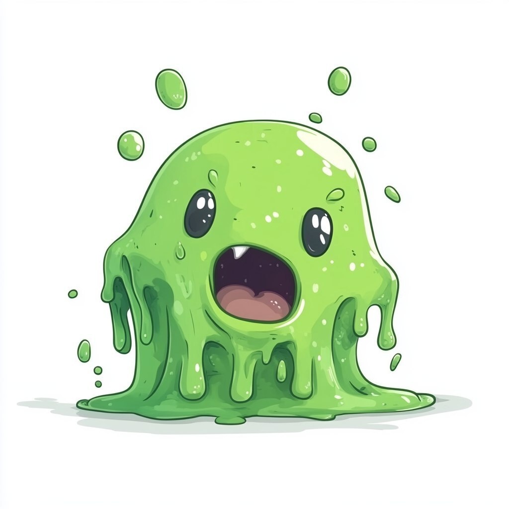 Создано на основе запроса: escaping cute slime in cartoon artwork,green with random shape and slimedrops, white background