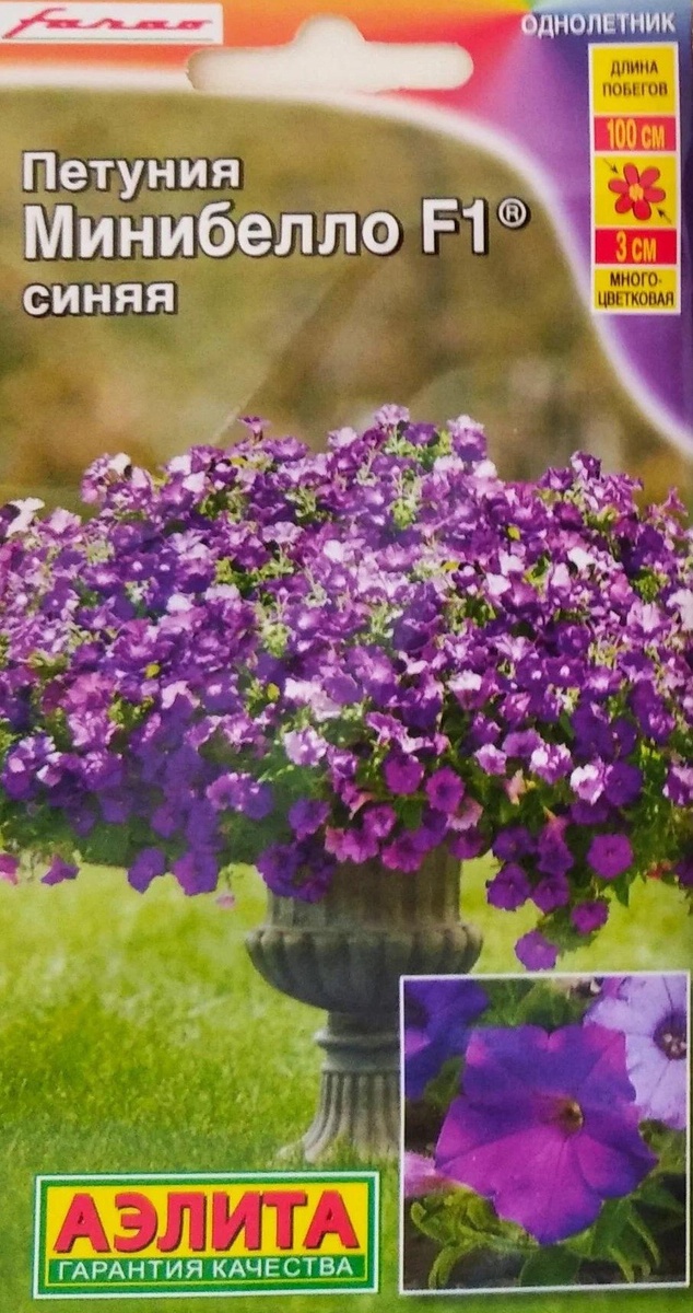 Петуния мини многоцветковая Минибелло синяя F1 от агрофирмы Аэлита – это яркий и неприхотливый гибрид итальянской селекции. Растение порадует обильным цветением с весны до поздней осени благодаря гену мужской стерильности, который обеспечивает непрерывное образование новых бутонов.