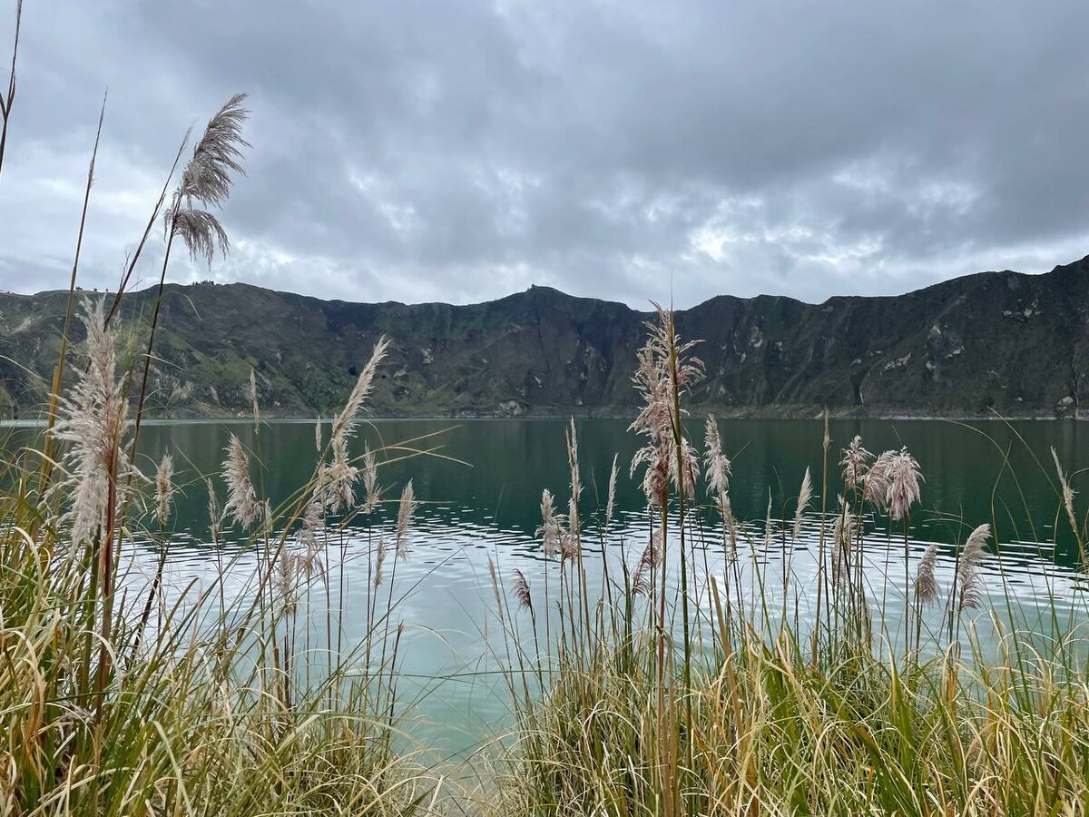 Посидев у воды, мы продолжили путь вдоль озера. Пробирались по камням, проходили через заросли травы (я даже немного палец порезала, раздвигая её). По дороге встретили пасущихся лошадок и ослика. Лошадки были пугливые, а ослик разрешил себя погладить. Лошадки-то чего пугливые? Их тут используют для подъёма наверх тех туристов, которые не находят в себе сил идти самостоятельно. Вот они, видимо (лошадки, а не туристы) и не подпускали близко, опасаясь, что придётся меня потом наверх везти. А ослики они просто гуляют. Поэтому доверяют людям. Даже совершенно посторонним. Ну, а мы, значит, выбрались на главную дорогу и потихоньку-полегоньку под начинающимся дождём вышли наверх. Наши коллеги, которые ходили вокруг кратера, пришли где-то на час позже, совершенно промокнув под дождём. Но они сами хотели приключений. Говорили, что мало, мол, мы им нагрузки и приключений даём. А у нас получилась в итоге прогулка на три часа, с набором высоты почти в 400 метров. И сбросом тоже, со