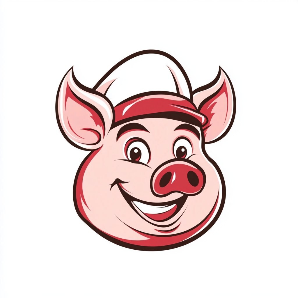 Автоперевод: Создайте логотип для магазина мяса свиного мяса, смешного и креативного, поднимающего настроения, белого фона, корпоративного стиля, стилизованного, 2D, современного стиля, изысканного стиля, внутри красного пустого круга