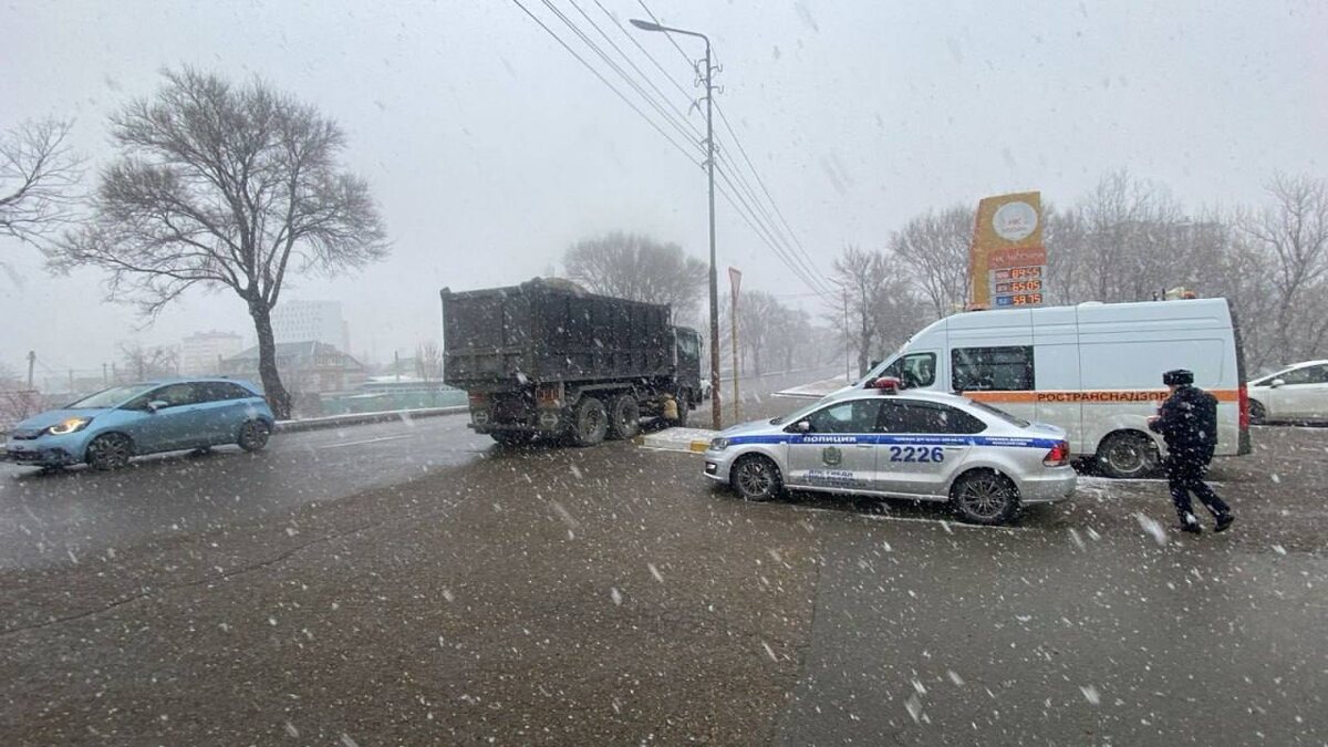 На Пушкинском мосту прошел совместный рейд ГИБДД и Ространснадзора по проверке большегрузов