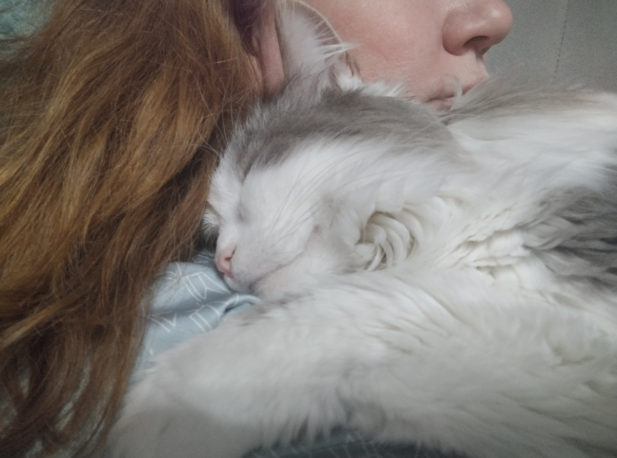 Решила не мешать домашним спать и не шебуршиться по дому. Буду просто лежать, читать и обниматься с кошаком.