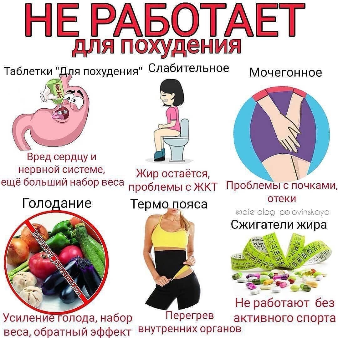 ❌ Таблетки "для похудения". Содержащиеся в них психотропные веществ разрушают клетки, заставляя организм питаться ими. Пагубно влияют на нервную систему, психику, мозг, суставы и сердце. После приема таких препаратов вес возвращается с процентами.