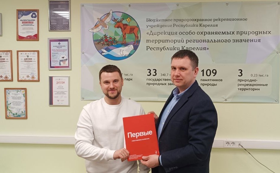 Руководитель Дирекции особо охраняемых природных территорий (ООПТ) регионального значения Карелии Иван Хорольский и председатель Совета регионального отделения «Движения Первых» Владимир подписали соглашение о совместной работе. Главная цель сотрудничества — привлечение молодежи к сохранению природы региона, развитие экологического просвещения и организованного туризма на ООПТ.