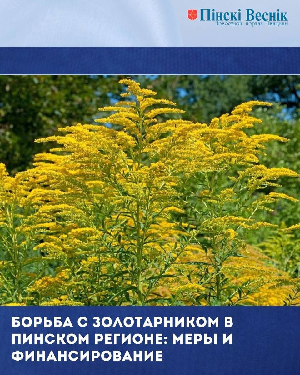 📌В Пинском регионе продолжается активная борьба с золотарником. ⤴️⤵️Установлено 45 мест его произрастания, наиболее пострадавшие — Оснежицкий и Пинковичский сельсоветы, а также пустыри в микрорайоне Верасы. ⚡️С начала 2024 года уже уничтожено 27 гектаров опасного растения с применением химикатов. На текущий год выделено 20 тысяч рублей, из которых половина будет потрачена на закупку средств для уничтожения золотарника на территории кладбища в д. Посеничи и прилегающих участках (около 8 гектаров). 📍📍@Пинский Вестник ЮТУБ | САЙТ| ИНСТ | ВК | ОК | ФЕ | Прислать новость