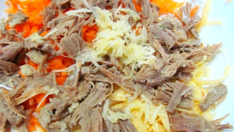 Помните эти дни, когда стол ломится от угощений, гости не умолкают, а холодильник трещит от остатков? Вот и у меня так было… Ветчина, купленная с таким энтузиазмом, одиноко лежала в ожидании своей участи. И знаете, раньше я бы просто вздохнула и выбросила ее. Но годы научили меня ценить каждый кусочек и превращать даже банальные продукты в маленькие кулинарные шедевры. Именно тогда я и открыла для себя этот салат – простой, как дважды два, но такой… ммм! Этот салат – настоящая палочка-выручалочка! Идеален, когда времени в обрез, а хочется чего-то вкусненького и необычного. Он как глоток свежего воздуха после тяжелого дня, как улыбка старого друга. Готовы приготовить чудо за 5 минут? Тогда поехали! Морковный бум: Берем нашу морковку и натираем на крупной терке. Не ленитесь, именно крупная терка придаст салату ту самую текстуру, которую мы так любим! Сыр туда же, следом за морковкой. Уже чувствуете, как запахло свежестью и витаминами? А это только начало! Чесночный ше
