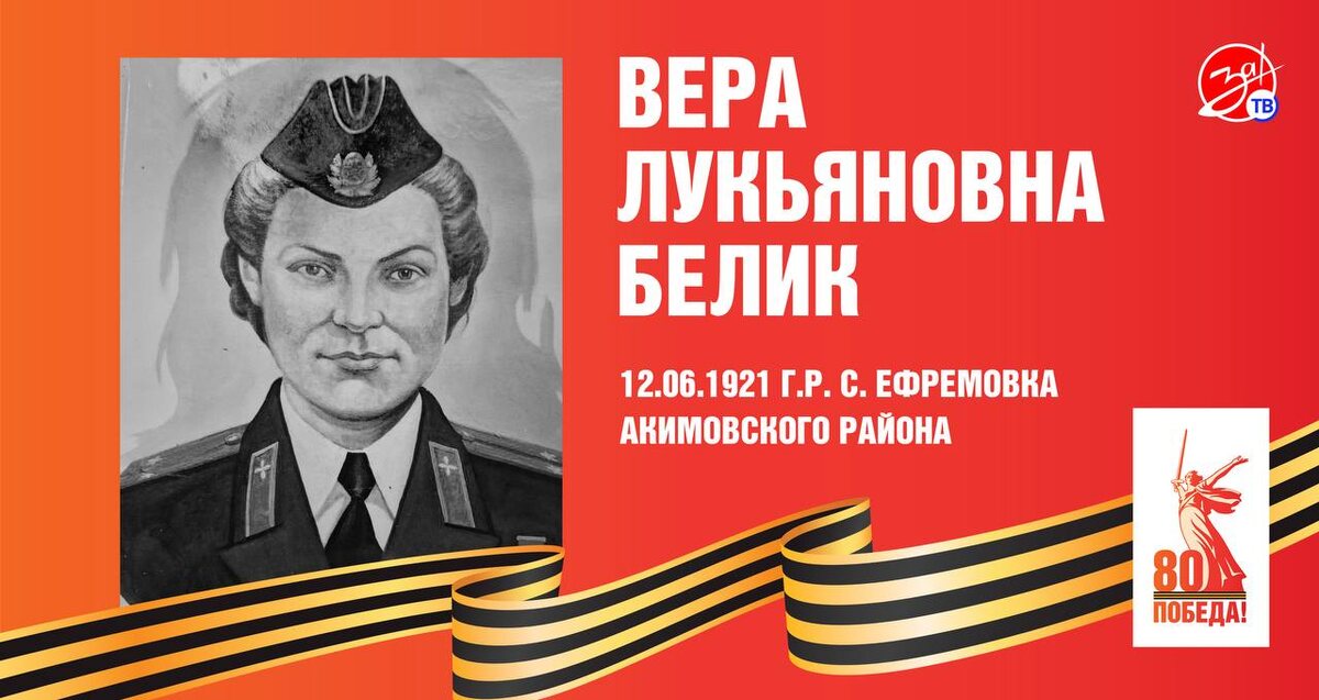 ❤️ Телеканал «За!ТВ» продолжает серию публикаций «Герои Советского Союза, жившие в Запорожской области». Вера Лукьяновна Белик — гвардии лейтенант, штурман звена 46-го гвардейского ночного бомбардировочного авиационного полка (325-я ночная бомбардировочная авиационная дивизия, 4-я воздушная армия, 2-й Белорусский фронт). Участвовала в битве за Кавказ, освобождении Кубани, Крыма и Беларуси, наносила бомбовые удары по военным объектам врага в Восточной Пруссии. К августу 1944 года она совершила 813 ночных вылета. В ночь на 25 августа 1944 года самолёт, в котором Вера Белик вместе с командиром экипажа гвардии лейтенантом Макаровой Т. П. возвращалась с боевого задания, северо-западнее города Замбрув (Польша) был атакован и сбит истребителем противника. Самолёт загорелся и горящим упал на землю, экипаж погиб. Награды: орден Ленина, орден Красного Знамени, орден Отечественной войны I степени, орден Красной Звезды. Звание Героя Советского Союза присвоено 23.02.1945 г. (посмертно). Памятни