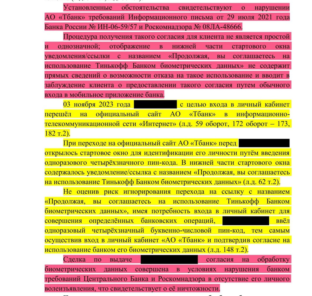 Автоматом не пройдёт: как суд отменил согласие на биометрию в Т-Банке Клиент банка пошёл в суд, потому что ему не понравился пункт в Условиях комплексного банковского обслуживания (УКБО). А именно: Про биометрию (2.24): банк прописал, что клиент автоматически соглашается на обработку своих биометрических данных (фото, голос), просто когда заходит в приложение, интернет-банк или пользуется банкоматом. Никаких отдельных галочек. Клиент посчитал, что это как-то неправильно, и нарушает его права. Суды (и первой инстанции, и апелляция) признали пункт незаконным и недействительным. Закон «О персональных данных» (152-ФЗ) говорит чётко: согласие на обработку данных, а тем более биометрических (это супер-чувствительная информация!), должно быть конкретным, информированным, сознательным и однозначным. А для биометрии, вообще-то, нужна письменная форма (или её электронный аналог, но явно выраженный). Эта новость сама по себе победа и прецедент 😎 Но и повод сделать выводы. Даже если вы не