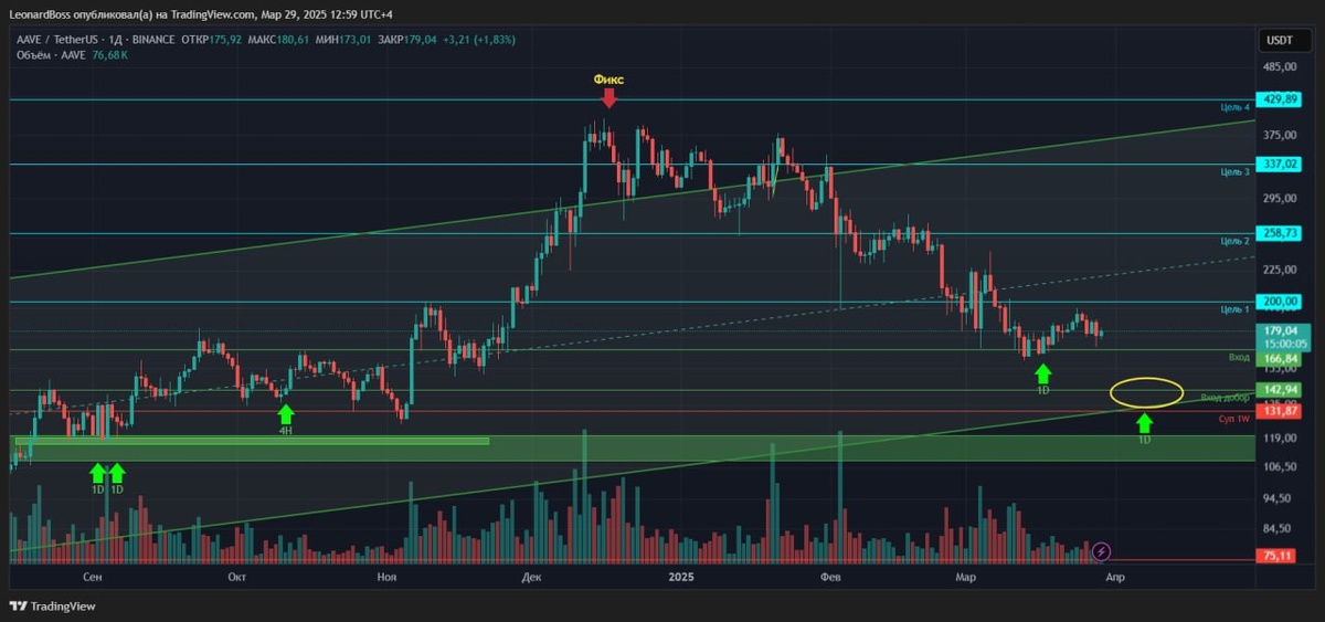 ⚠️Почему его снова взял в работу? Во-первых, сильнейший проект! Во-вторых, на мой взгляд его уже достаточно остудили, и то, что он заглянул под уровень прежней 1й цели, для меня тому подтверждение! Если будет еще один импульст снижения, то доберу его в зоне уровня 142$. Поза разделена на пропорцию 70/30, где 70% уже куплено!!