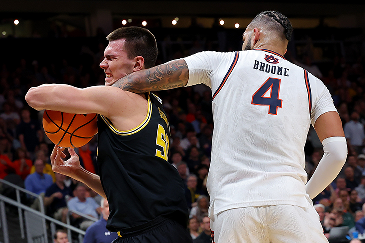 После вылета Егора Демина, оставался последний россиянин, играющий в турнире NCAA – Владислав Голдин. Его Мичиган сразился с командой Обернского университета, одним из фаворитов «Мартовского безумия». Голдина нейтрализовали Рост 216 см сегодня стал не преимуществом, а недостатком, как бы странно это ни звучало. Быстрые и маленькие оппоненты разменивались с помощью заслонов на центрового и проходили мимо него на скорости. Другой проблемой стал форвард Джони Брум, присвоивший щит. Сегодня он вошел в историю колледжа: стал третим игроком, набравшим в «Мартовском безумии» более 20 очков и 15 подборов. Встал в один ряд с двумя Чаками: Баркли и Персоном. В атаке у Голдина совсем не шло. В первой половине его практически не подпускали к «краске», что заметил и главный тренер Дасти Мэй. Впрочем, нападением занялся партнер Владислава – Дэнни Вольф. Их связка бигменов показывала отличный результат в своей конференции. Сегодня на счету здоровяка 20 очков при 50% реализации. Влад в этом плане подк
