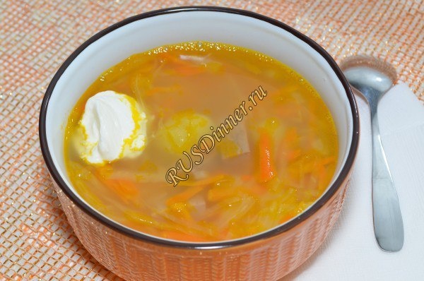 Щи из квашеной капусты Ингредиенты: Говядина - 500 гр. Картофель - 350 гр. Морковь - 200 гр. Лук репчатый - 1 шт. Капуста квашеная - 250 гр. Вода - 3500 мл. Масло растительное - 50 мл. Соль - 10 гр. (при необходимости) Перец черный молотый - 5 гр. Источник: https://rusdinner.ru/page/shhi-iz-kvashenoj-kapusty
