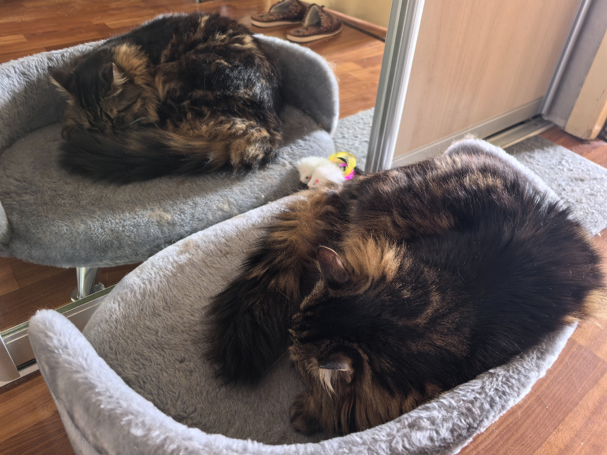 Всем привет! С вами Кузя Кусалочкин и сегодня я расскажу как удивлял хозяйку и что в итоге она мне купила. Утро началось опять не с паштета. Креветки закончились, но были мидии и хозяйка сварила их. Я очень орал, поторапливал. Потом хозяйка поставила мне блюдце. Я понюхал, подошёл с одной стороны, с другой. И тут хозяйка поняла, что надо мидии, как и креветки, измельчить. Молодец, сообразительная! И после этого я все мидии съел и пошёл отдыхать. Кстати, пока хозяйка занималась домашними делами и варила мидии, я очень активно лез под раковину, но хозяйка сразу и не поняла что я там забыл. Хозяйка занималась своими делами, а я спал. Проснулся, уже не помню что делала хозяйка, но дверца шкафчика под раковиной опять была открыта и я туда полез. Тут хозяйка поняла, что я ем лук. У неё там лук лежит и у него начали перья расти, хотел пожевать. Но мне не разрешили. Хозяйка пообещала купить мне кошачью травку. Почему у меня нет постоянно этой травы дома? Просто потому что я её не ем. Хозя