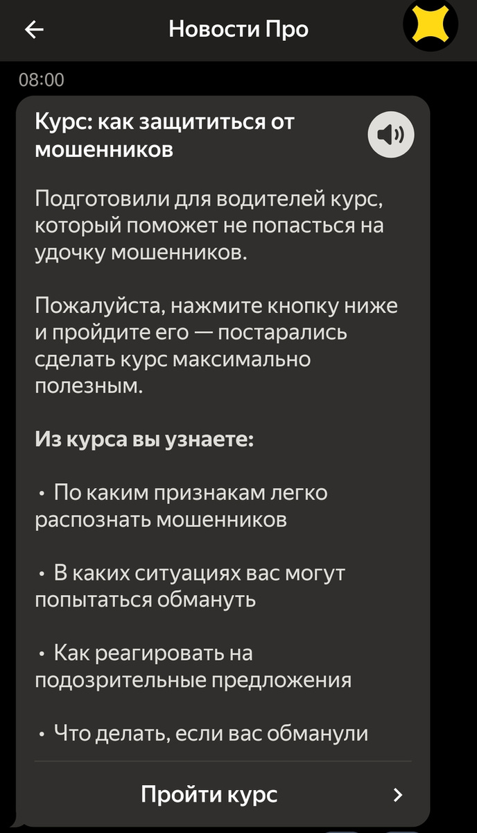 В приложении Яндекс.Про получил вот такое уведомление: