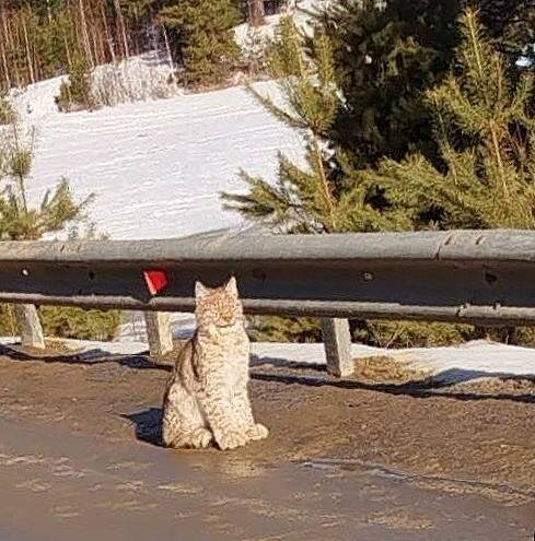 😍Недалеко от Урая (ХМАО) водители встретили редкую гостью – рысь.🐱Дикая кошка спокойно сидела прямо на обочине, словно наблюдая за движением машин.