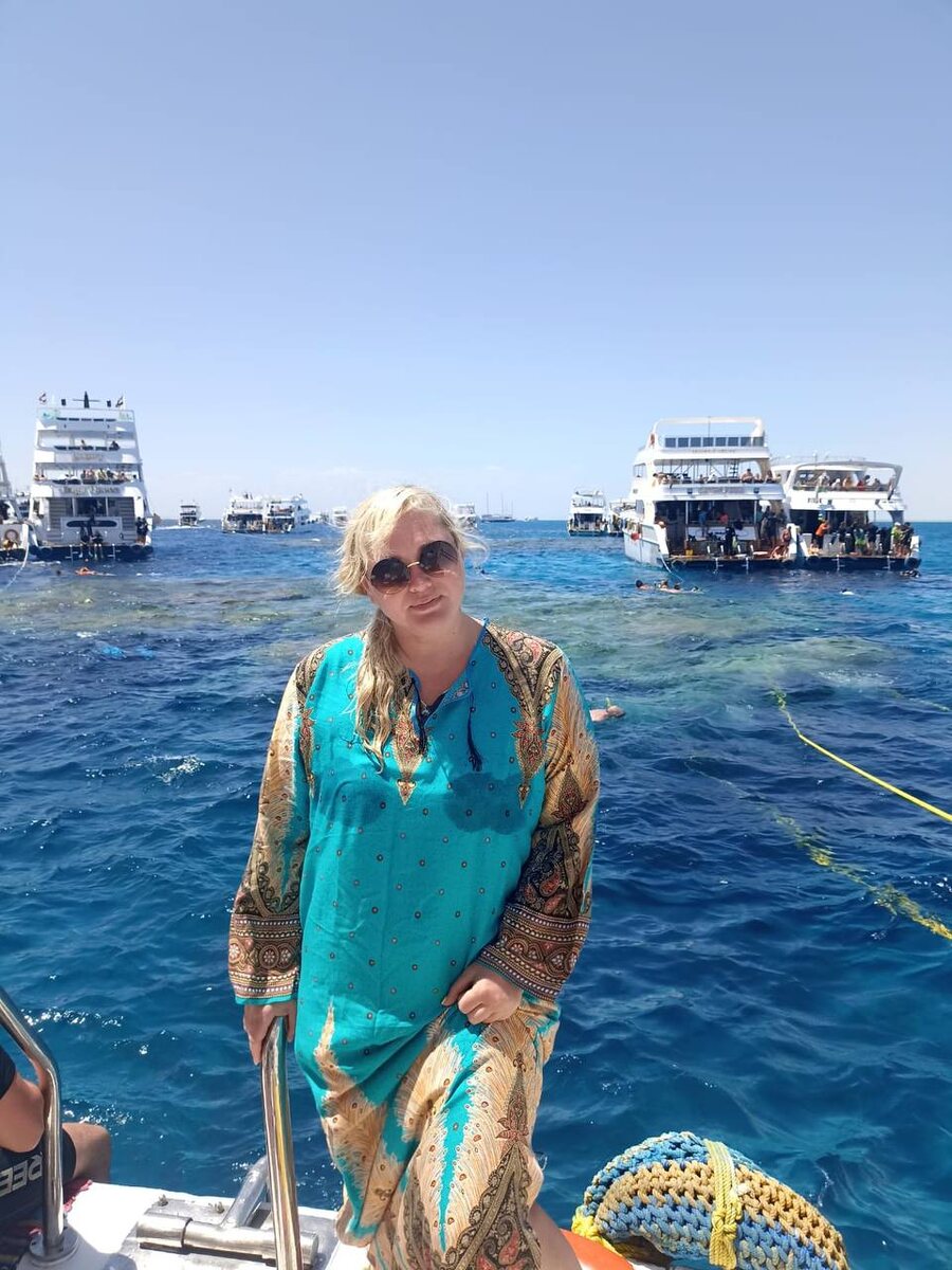 Читая множество публикаций о страшной трагедии с подводным батискафом «Синдбад» в египетской Хургаде, я вдруг осознала, что так и не рассказала о своем опыте путешествия в Египет, дайвинге, а самое главное, об экскурсии на яхте на остров, который называют «Египетские Мальдивы». Исправляюсь. Расскажу о нашем опыте путешествия к рифу на яхте. Потому что на острове посреди Красного моря, который окружен подводным рифом, белый песок и лазурное море. Я на Мальдивах пока не была, но склонна верить людям, которые дали такое название острову. Одной из лучших возможностей познакомиться с этим раем является экскурсия на яхте к лучшим местам для дайвинга и снорклинга. Белоснежный пляж, кристально чистая вода и, главное, невероятное богатство подводного мира – вот что привлекает сюда путешественников со всего света. На двухпалубной яхте было несколько человек из России, остальные - иностранцы. В основном, из Италии и Германии. Сотрудники туристического агентства, присутствующие с нами в этой