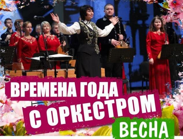Программа «Весна» из цикла «Времена года с оркестром» включает в себя шедевры Штрауса, Чайковского, Вивальди, Алябьева. Вместе с оркестром выступят заслуженная артистка Республики Калмыкия Светлана Катаева (колоратурное сопрано), солисты оркестра: Виктор Герасимов (баян), Даниил Терещенко (баян), Павел Медников (флейта-пикколо), лауреаты Государственной премии Волгоградской области Людмила Попова (домра), Пётр Рябов (балалайка), Станислав Венгеров (перкуссия).