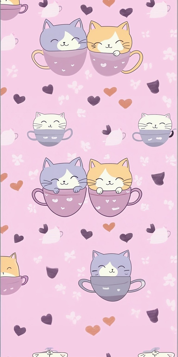 Создано на основе запроса: Create Vector Cute couple cat in the cup seamless pattern background