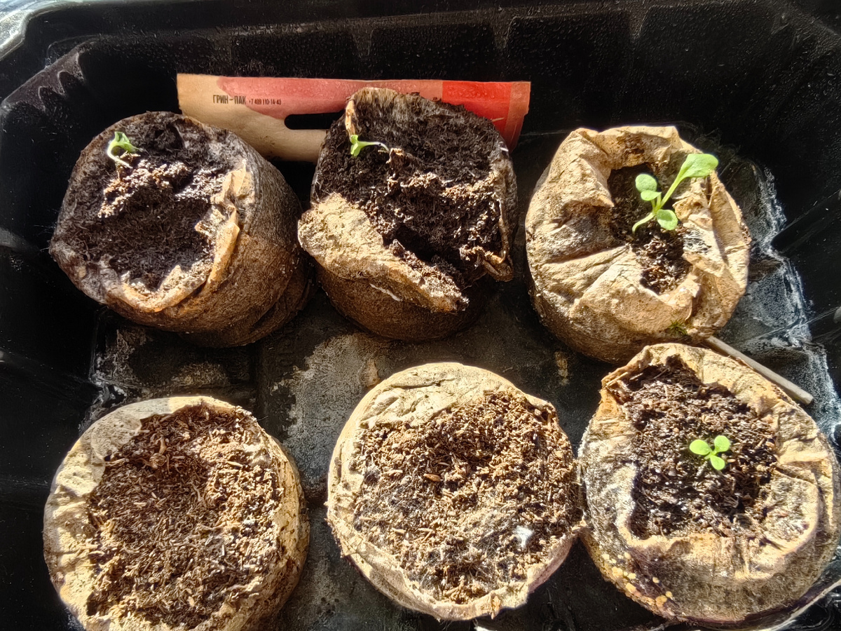 - А в-третьих, семена дорогих петуний (я посеяла сразу 6 штук) в них пропали. Всходили они очень долго и мучительно. Гораздо дольше, чем обычно. А когда крошечные росточки проклюнулись, то сразу высохли. Им банально не хватило влаги. То, что они проклюнулись, я увидела, рассмотрев поверхность таблеток в лупу. Я решила, что вина моя, не уследила. Таблетки не виноваты.