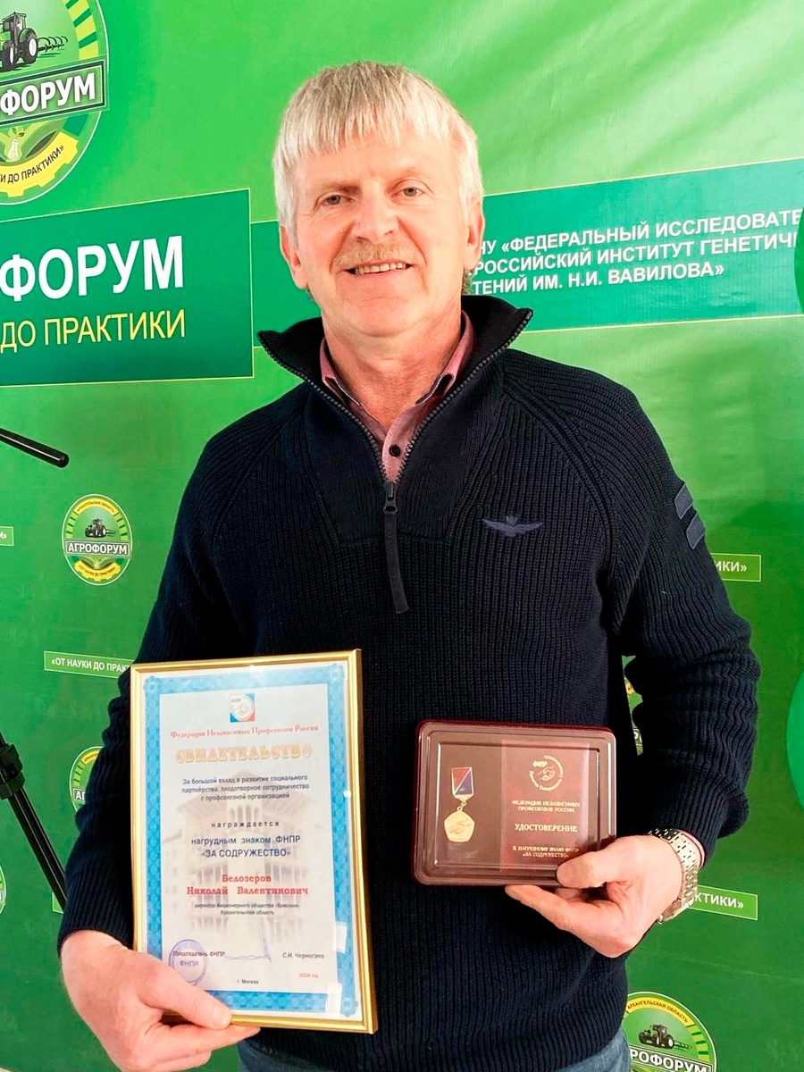 Николай Валентинович Белозёров, директор АО «Важское», отмечен нагрудным знаком Федерации Независимых Профсоюзов России «За содружество». Эта награда – знак признания высоких заслуг руководителя предприятия, внёсшего значительный вклад в развитие трудовых и социально-культурных интересов работников.