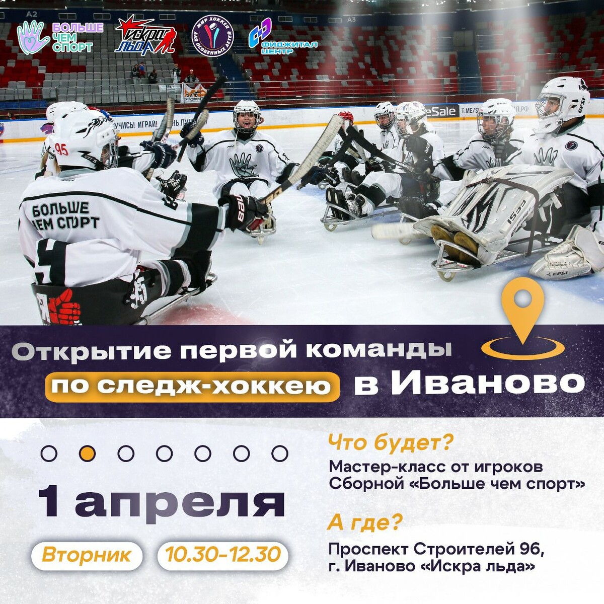 🌟 Внимание, друзья! 🌟 1 апреля в спортивно-тренировочном центре «Искра Льда» состоится невероятное событие – мастер-класс по следж-хоккею для воспитанников Ивановских школ-интернатов! 🏒❄️ Тренировку проведут игроки сборной команды «Больше чем спорт» из г. Саранска. Эти талантливые ребята с радостью поделятся своим опытом и навыками с юными хоккеистами! Не упустите шанс получить незабываемые впечатления! 😄🔥 Приходите и поддержите эту замечательную инициативу! Давайте вместе создавать мир, где спорт объединяет всех! 💪❤️