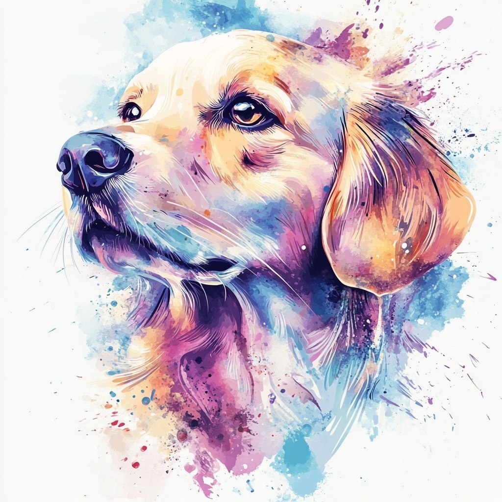 Создано на основе запроса: A soft, artistic design featuring watercolor-style paintings of a dog, with splashes of color and gentle lines