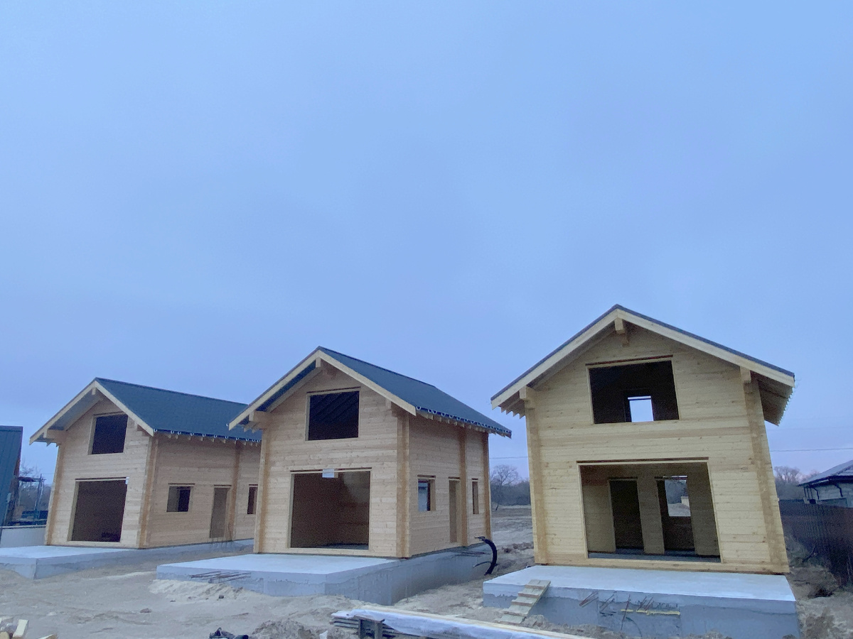 Всего полтора месяца назад мы начали сборку, а теперь три домика уже стоят под крышей. Изначально мы думали, что они предназначены для сдачи рыбакам, но оказалось, что это проект трех друзей из Москвы, которые дружат семьями и любят рыбалку. Дома решили построить для себя. Путь из Москвы в Астрахань — не близкий, 1500 км, но на самолете всего 2,5 часа. Заказчики несколько раз прилетали на промежуточную приемку и признались, что долго искали подрядчика в других областях. Наша компания покорила их открытостью, качеством сборки и подробными фото и видео отчетами. Это было важно, так как стройка происходила очень далеко от них. Перед бригадой Евгения Муравьева стояла сложная задача — собрать три дома, установить кровлю из гибкой черепицы и обсадные коробки за 45 дней. Условия были непростые: пустынная зона Астраханской области и ураганные ветра. Но нам все удалось! Проект каждого домика включает три спальни, кухню-гостиную, прихожую, два санузла и открытую террасу. Кухня-гостиная выходит н