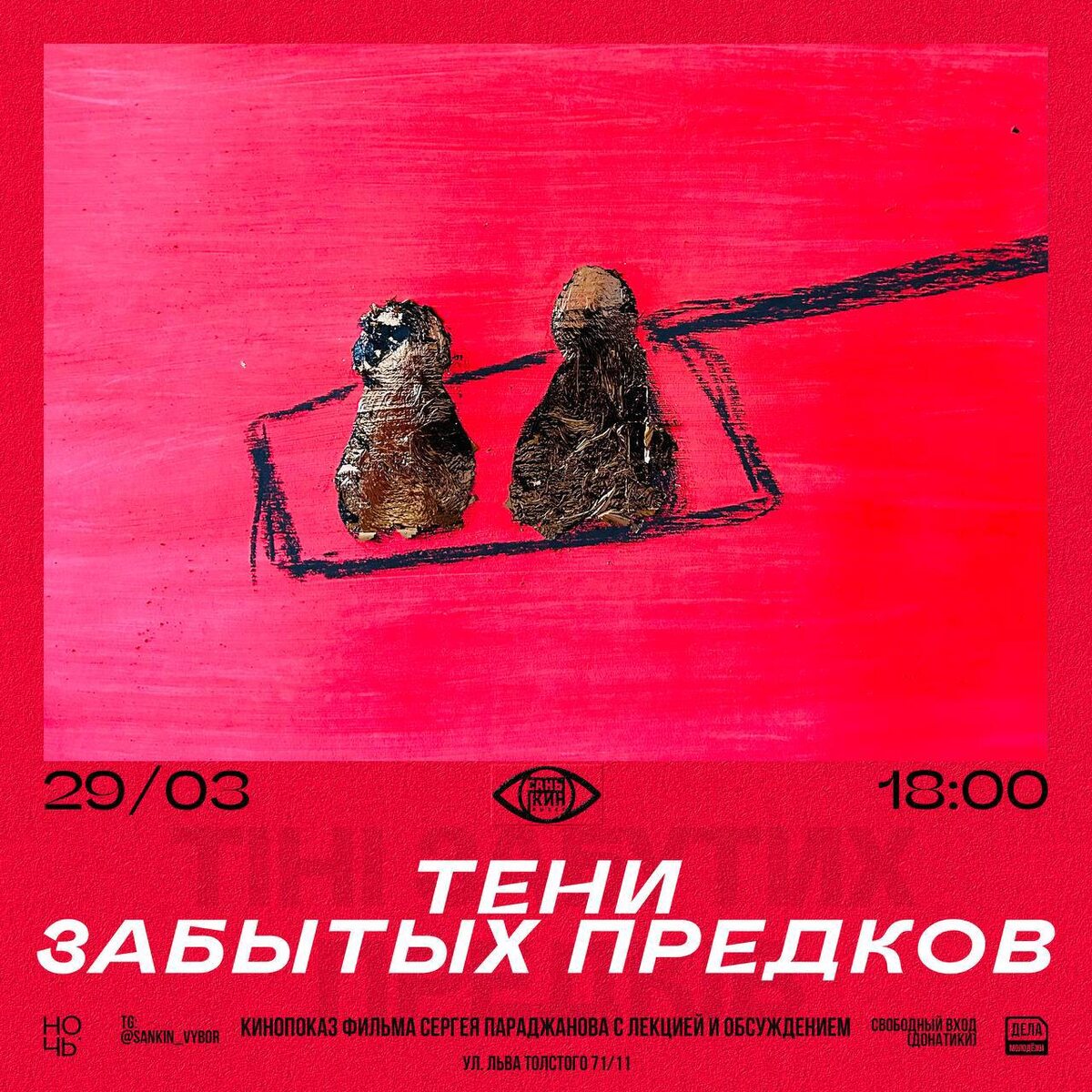 ТЕНИ ЗАБЫТЫХ ПРЕДКОВ | 1964 реж. Сергей Параджанов 🗓️ 29 марта 18:00 📍Льва Толстого, 71/11 (вход со двора) Свобода — это главное понятие в контексте жизни и творчества Параджанова. Свобода во всём: в сюжетах, в художественных решениях (в оформлении декораций, в световых решениях, в композициях кадра), в способе существования актёра в кадре. Этот фильм стал одним из первых настоящих прорывов Сергея, после чего за его кинематографом начали следить киноведы со всего мира и ждать следующих картин от этого доброго, слегка безумного и невероятно витального, волевого художника. 🏷️ Вход по регистрации (оставляйте фамилии в комментариях вот тут) #29марта25