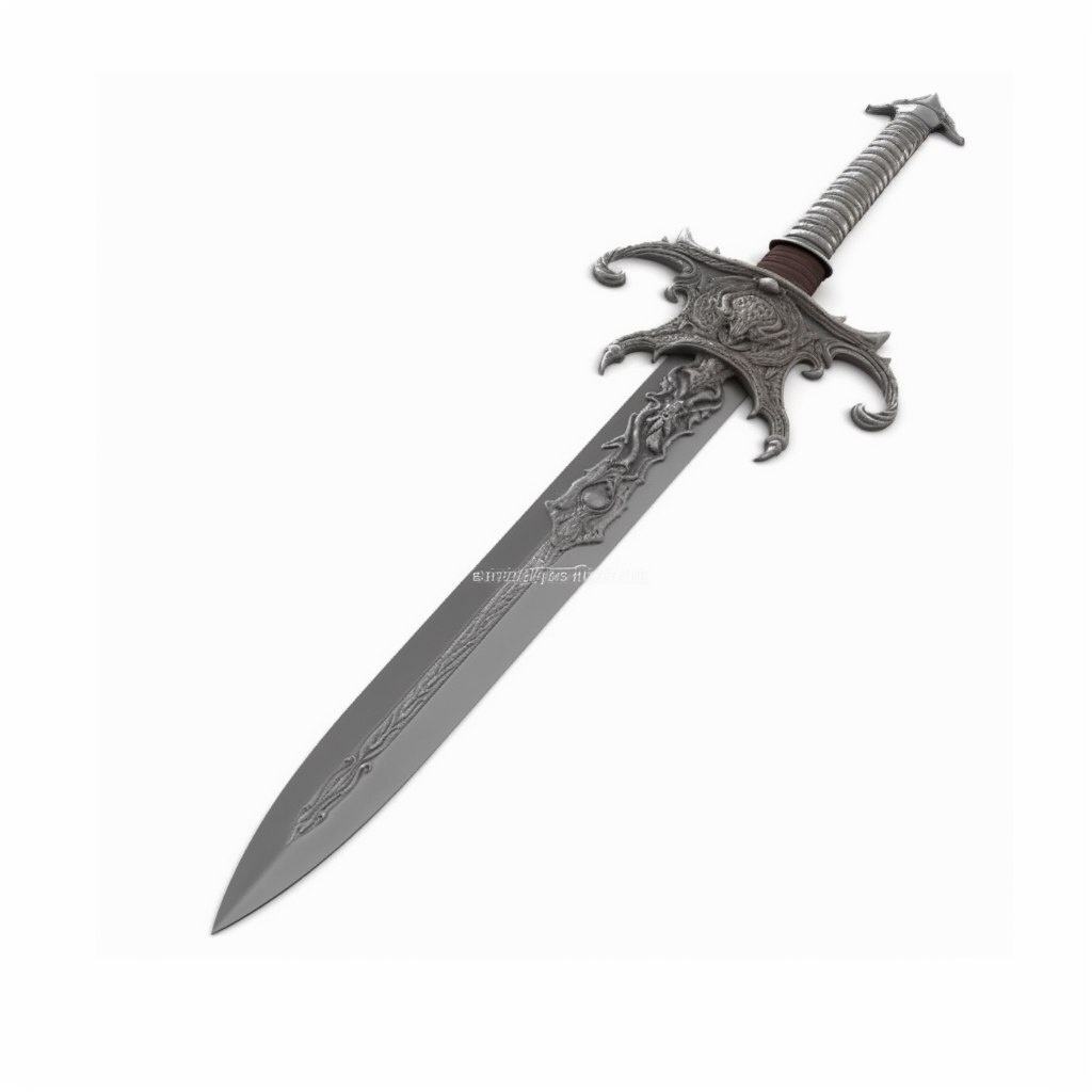 Создано на основе запроса: An ornate metal sword with the essence of a dragon forged in it, no background, high definition