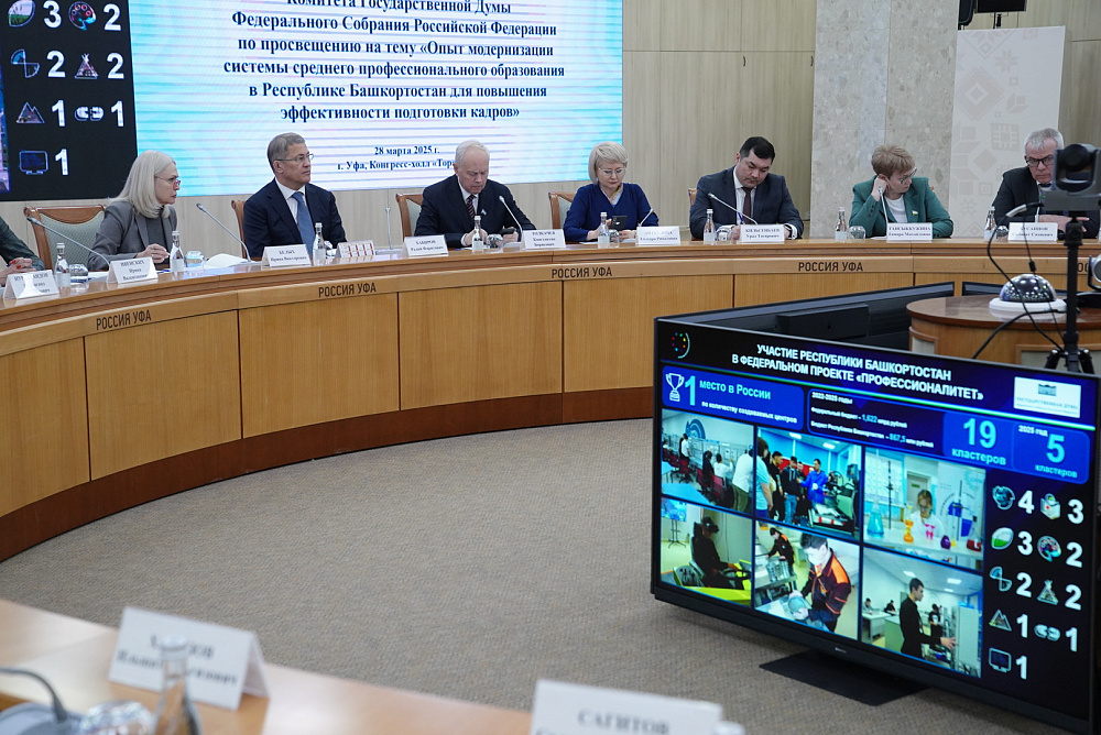 В уфимском Конгресс-холле «Торатау» глава республики Радий Хабиров принял участие в выездном совещании Комитета Государственной Думы Федерального Собрания Российской Федерации по просвещению.