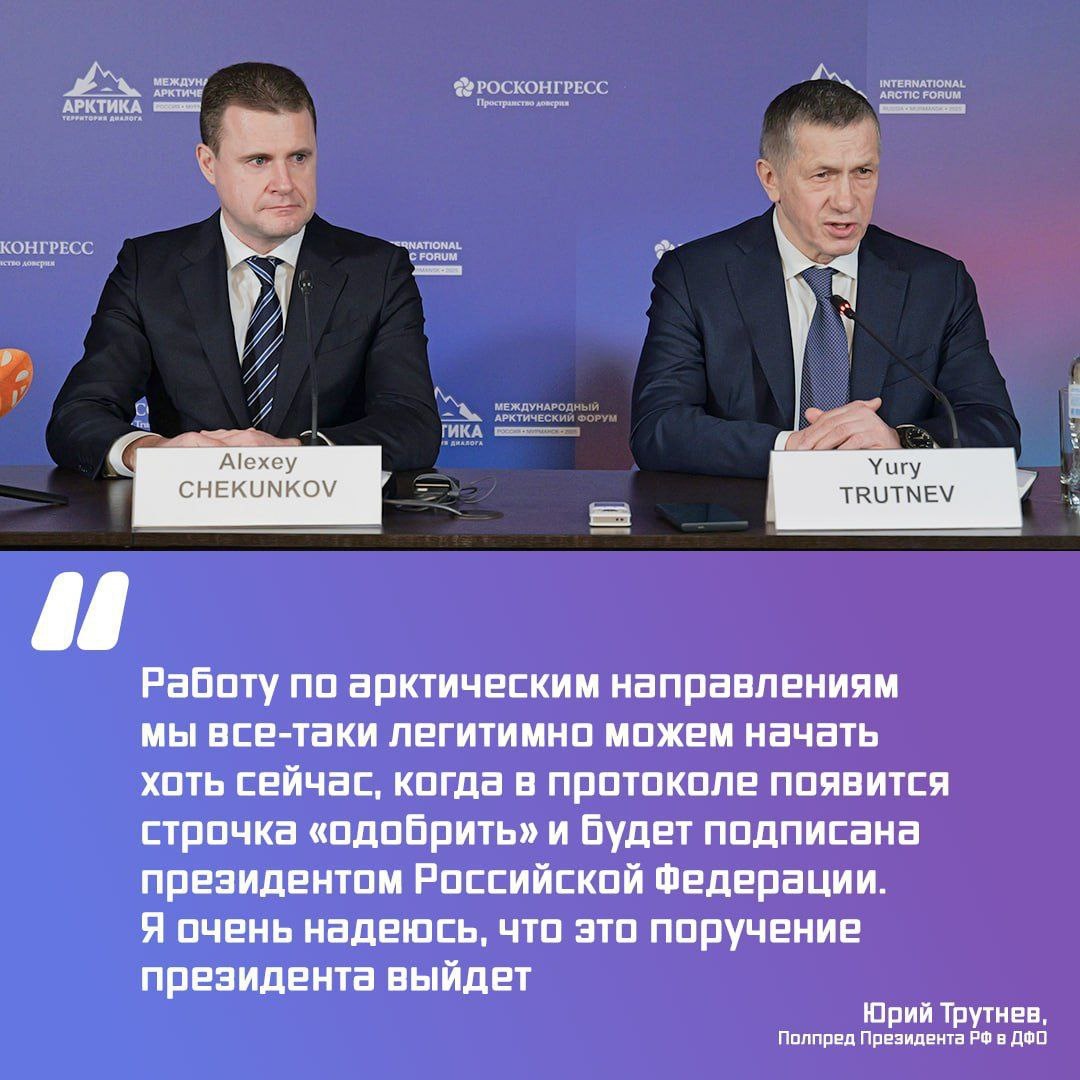 Объем бюджетных инвестиций в мастер-планы опорных городов Арктической зоны РФ приблизится к 1,3 трлн рублей. Об этом сообщил Полпред Президента РФ в ДФО Юрий Трутнев, на итоговой пресс-конференции в рамках Международного арктического форума. – 570 млрд утверждено, но с учетом позиции министерства финансов, с учетом того последнего совещания, которое мы проводили вместе с министром финансов РФ Антоном Силуановым, я думаю, что эта цифра приблизится к установленной президентом планке в 1,3 трлн рублей. Работу по арктическим направлениям мы все-таки легитимно можем начать хоть сейчас, когда в протоколе появится строчка "Одобрить", и будет подписана президентом Российской Федерации. Я очень надеюсь, что это поручение президента выйдет–, - сказал Юрий Трутнев. VI Международный арктический форум состоялся в Мурманске 26 – 27 марта. Мероприятие было приурочено к 500-летию открытия Северного морского пути и организовано фондом «Росконгресс» при поддержке правительства России. В форуме приняли
