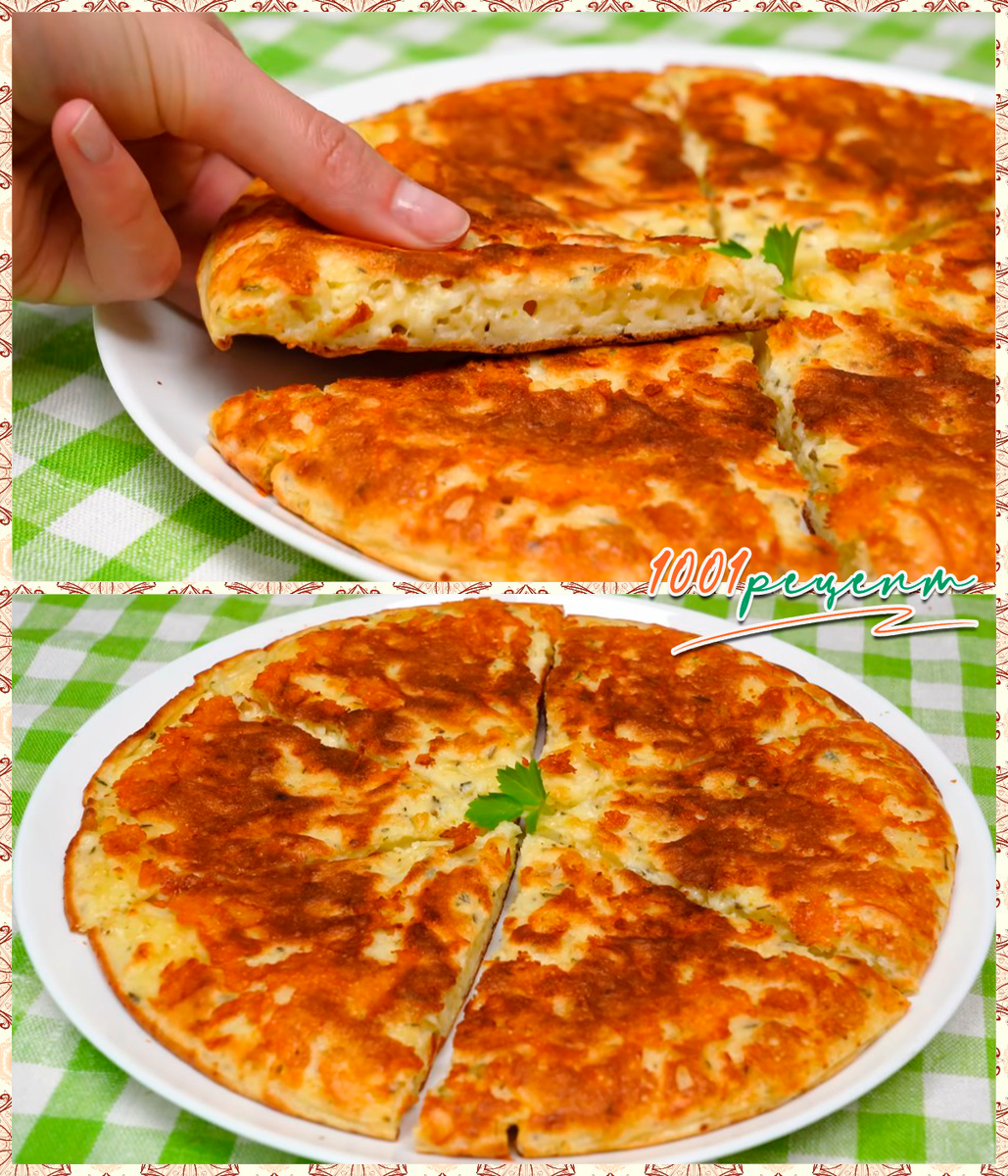Без выпечки! На завтрак, обед или ужин, просто идеальное блюдо. 🔸Яйцо 3 шт. 🔸Соль, специи по вкусу 🔸Сметана/йогурт 100 г (3-4 ст. л.) 🔸Сыр 100-150 г 🔸Мука 80 г (3-4 ст. л.) 1️⃣В миску выбиваем яйца, добавляем соль и специи по вкусу. У меня прованские травы, смесь овощей и сухой чеснок. 2️⃣Добавляем сметану и все тщательно перемешиваем венчиком. 3️⃣На крупной терке натираем твердый сыр и добавляем в миску. Добавляем 3-4 ст. л. муки и снова все перемешиваем до однородной массы. 4️⃣Выливаем массу на разогретую сковороду, смазанную растительным маслом, накрываем крышкой и обжариваем до румяности с обеих сторон на небольшом огне. 5️⃣Готово! Перекладываем на тарелку, нарезаем на порционные кусочки и подаем к столу. ©️Кулинарим с Таней 2.