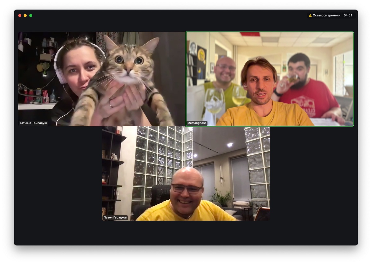 Вчера вечером подкаст писали как-то так: пока одни пытались что-то говорить по теме, другие тыкали котом в камеру и умилялись этому