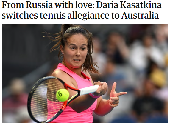 Мне одному это напомнило политические баталии времён "холодной войны"? Когда с каждым бывшим советским гражданином, сбежавшим в США, носились как с писаной торбой? По-моему, прям пахнуло! Пишет Фокс Ньюс: Из России с любовью: Дарья Касаткина меняет гражданство на Австралийское Звезда тенниса российского происхождения Дарья Касаткина была тепло принята в Tennis Australia и начнет выступать за свою новую страну сразу же после получения нового паспорта. Двенадцатая ракетка мира Касаткина подтвердила в субботу, что ее заявление на постоянное место жительства было одобрено правительством. Касаткина, которая станет первой ракеткой мира среди женщин в Австралии и самой высокорейтинговой теннисисткой страны с момента ухода Эш Барти, впервые будет играть под австралийским флагом на Открытом чемпионате Чарльстона на следующей неделе. Она выступала в туре как нейтральный спортсмен после того, как российским и белорусским спортсменам было запрещено выступать под своими флагами после вторжения Моск